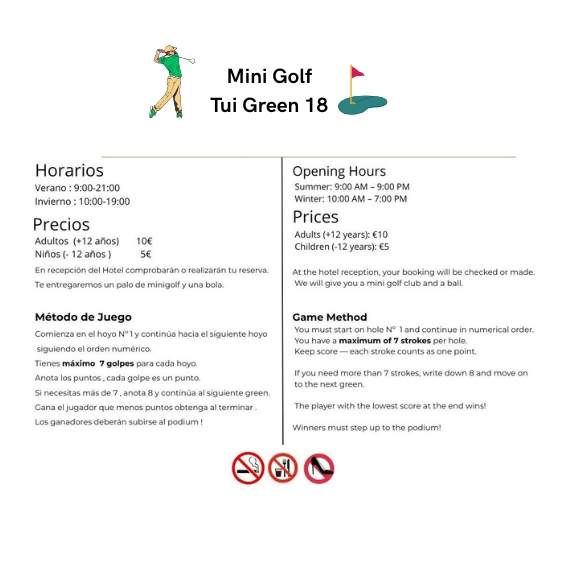 Mini golf Tui Green 18 ya es una realidad! Es un espacio de ocio abierto al público general y pensado en todas las edades.