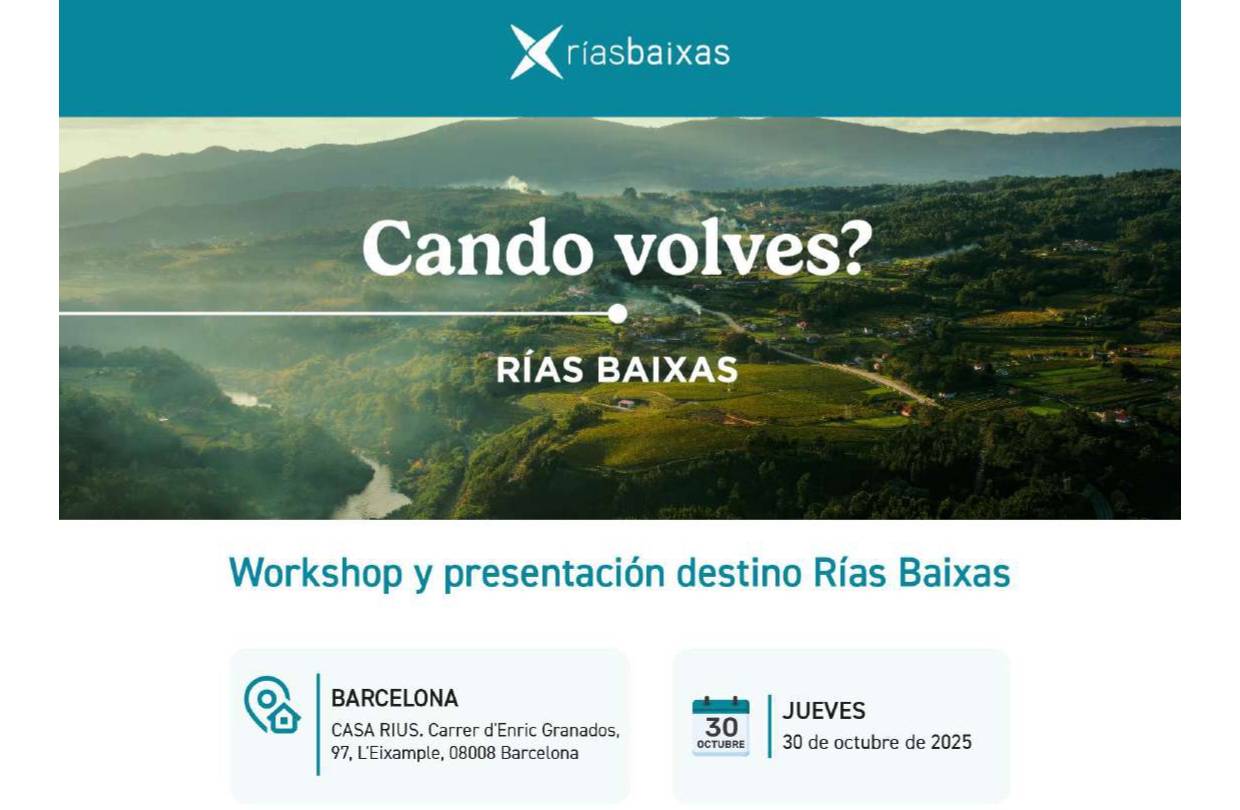 Los próximos 29 y 30 de octubre tendrá lugar en Zaragoza y Barcelona respectivamente un workshop que permitirá al público relacionarse con los principales agentes turísticos de las Rías Baixas.